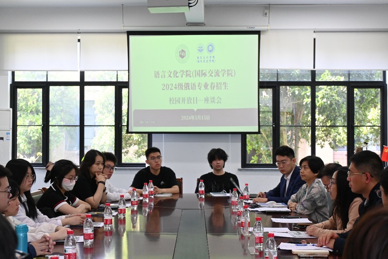 5月15日下午,语言文化学院(国际交流学院)举办2024级俄语专业春招生校园开放日活动。学校招生办公室副主任王永,学院副院长夏甘霖、党总支副书记魏洲阳、俄语专业教研室主任赵凤彩、主课教师陈亚星、辅导员杨炎烽,以及首届春招新生和部分家长参加活动。