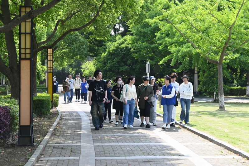 为使春招学生更好地熟悉校园环境,准确掌握学校各处的功能区划,高年级学生代表任思思、高杨菲和肖茹带领学生和家长游览校园,依次参观了上合培训基地、博雅馆、庸夫楼、图书馆、天马讲堂、成德楼、国防教育园、明文苑、明法苑等标志性建筑。结合学校四十周年校庆,志愿者们展开了丰富的介绍,并针对新生感兴趣的大学生活问题进行了解答。