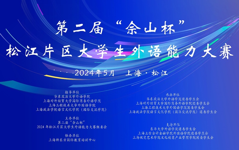 为切实增强当代学子的外语实践能力,提高当代青年用外语讲好中国故事的水平,搭建松江片区各高校学子间交流学习的平台,营造良好的校园学术文化氛围,4月至5月,语言文化学院(国际交流学院)与华东政法大学外语学院、上海对外经贸大学国际商务外语学院、上海工程技术大学外国语学院共同主办了第二届“佘山杯”松江片区大学生外语能力大赛。