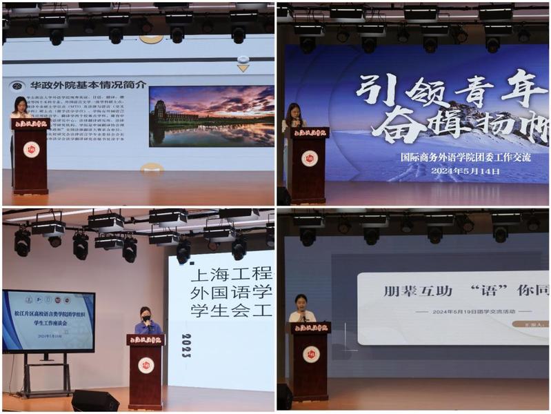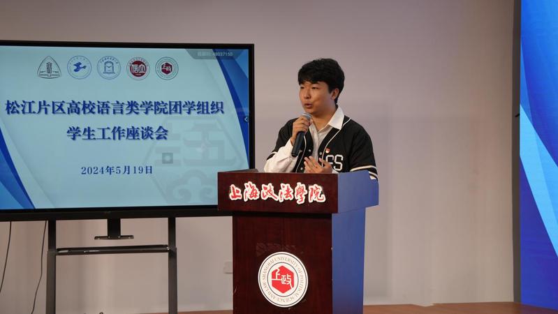 为加强兄弟院校团学组织间的交流学习,松江片区高校语言类学院团学工作座谈会近日在我校成德楼多功能厅举行。本次活动由语言文化学院(国际交流学院)团委组织,华东政法大学外语学院团委学生会、上海对外经贸大学国际商务外语学院团委学生会、上海工程技术大学外国语学院团委学生会、上海立信会计金融学院外国语学院团委学生会骨干代表及我校学生会执行主席王啸坤受邀出席座谈会。语言文化学院(国际交流学院)团委副书记徐俊及各部门骨干代表参加座谈会。会议由语言文化学院(国际交流学院)学生会执行主席兼团委副书记胡家暄主持。
