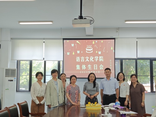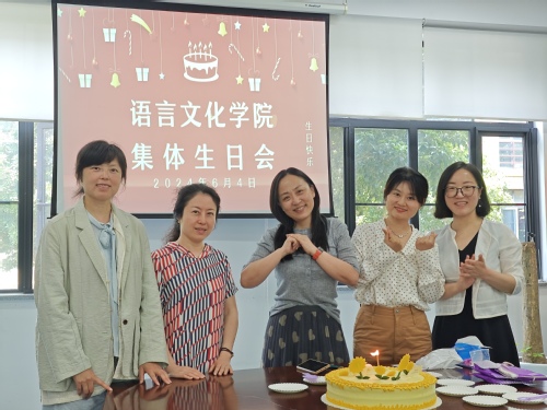 6月4日中午,语言文化学院(国际交流学院)在明文苑A1-101为6月份生日的教职工举办了一场仪式感满满的集体生日会。