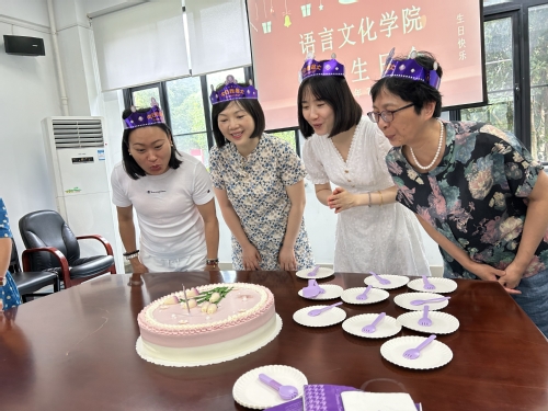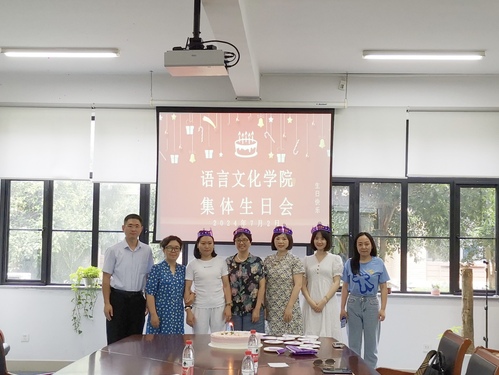 7月2日中午,语言文化学院(国际交流学院)在明文苑A1-101为7-8月份生日的教职工举办了一场仪式感满满的集体生日会。