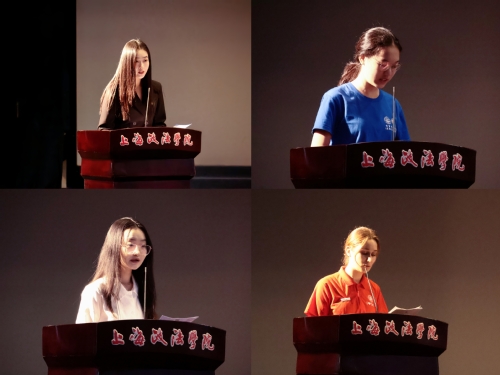 翻译专业教研室徐文姣博士作为教师代表发言。她以互动的方式指出了新时代翻译人才的重要性。同时,提出了“课堂学习”“课外实践”“自立合作”的三点建议,鼓励大家借助语言的力量成就自我,迈向更加灿烂的明天。