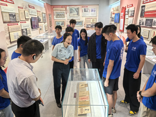 当天,一行人整齐列队,带着崇高的敬意踏入国防大学政治学院的大门。在学院相关负责人的引领下,共同参观了学院的军队政治工作史馆。参观过程中,同学们一边用心观看展厅里的图片文字与一件件革命文物,一边认真聆听讲解员的讲述,仿佛穿越了时间的长河,亲历了中国人民革命战争所走过的每一步艰辛历程。
