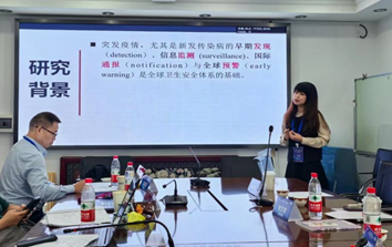 徐文姣老师的发言题目为《全球卫生治理中的监测预警体系:困境与出路》,她深入剖析了全球卫生治理中监测预警体系所面临的能力、制度和政治困境,尤其是在信息通报与共享、国家间合作和卫生资源分配方面的挑战,并提出了加强国际合作、改革国际组织、支持发展中国家核心卫生能力建设的建议。她的发言得到了与会专家的高度认可。