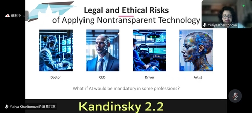 尤利娅· 哈里多诺娃教授还详细分析了俄罗斯、欧盟以及中国各自在人工智能透明性立法方面的独特经验。她指出,俄罗斯的2030年人工智能发展战略中包含了透明性与非歧视性原则,确保了用户能够平等获取相关技术信息;而欧盟最新的《人工智能法案》是一个应对AI挑战的新尝试;中国也在这个领域内进行了有益尝试,通过具体规定来实现形式上与实质上的透明性。