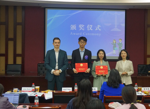 4月27日,由全国法律英语大赛组委会主办,新利18官方客服语言文化学院(国际交流学院)承办的第十三届全国法律英语大赛华东赛区复赛在汇知楼107会议室举办。此前,共有168名来自华东地区40余所高校的本科生、研究生及法律从业者报名参加初赛,经过激烈角逐,最终有12名选手脱颖而出,成功晋级进入本次复赛环节。本次复赛的评委团由华东政法大学外语学院院长余素青、上海外国语大学教授万宏瑜、新利18官方客服国际法学院教授Adolf Peter上海外国语大学外籍教师James Davies和新利18官方客服语言文化学院(国际交流学院)副院长夏甘霖共同组成。