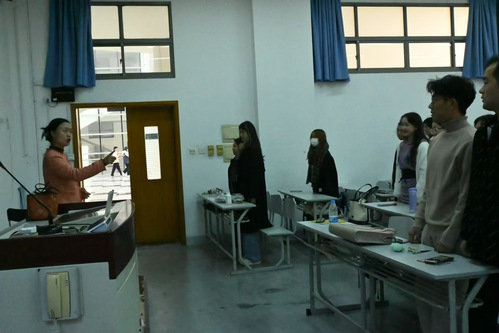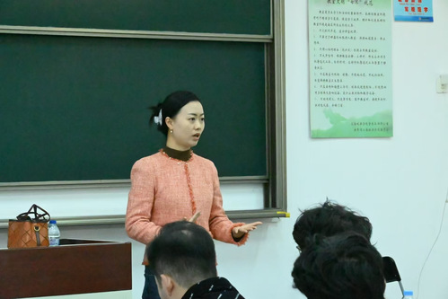 谢老师结合个人工作及指导学生获奖经历,围绕红色歌曲传唱与红色历史、党的理论、音乐知识等方面,将歌曲艺术赏析与思想价值引领相结合,让师生们从视、听、唱、悟等角度,沉浸式体验红色歌曲的魅力。她激励大家从音乐中汲取信仰力量,学习党的光荣传统和优良作风。谢飞老师还亲自示范了合唱的标准站姿、讲解如何正确地呼气吸气、声音的运用、音准的把握以及节奏的掌握等歌曲演唱中的基础知识。同学们积极参与课堂讨论,及时提出并解决自身疑问,营造出和谐、积极、向上的学习氛围。