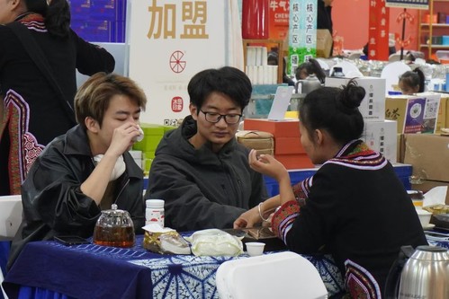 上海国际茶叶交易博览会规模宏大,展览面积达数万平方米,设立了多个展区,包括茶叶、茶器、茶会和茶周边产品等。进入展馆,首先映入眼帘的是各类茶叶的展台,从云南的普洱到福建的白茶,从浙江的绿茶到四川的红茶,各种茶叶琳琅满目,香气扑鼻。在这里,我校师生品尝到了各种名茶,还了解了它们的产地、制作工艺和方法,对茶文化有了更深入的认识。