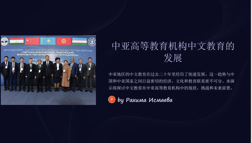 Rakhima Ismaeva教授首先梳理与回顾了中文在中亚的发展历史,接下来从孔子学院布局、高校中文专业设置、相关机构中文教育等方面,分别概述了乌兹别克斯坦、哈萨克斯坦、吉尔吉斯斯坦、塔吉克斯坦、土库曼斯坦等中亚五国的中文教育状况。最后分析了近些年中亚中文教育快速发展的原因以及面临的主要问题,并且展望了未来的发展前景。