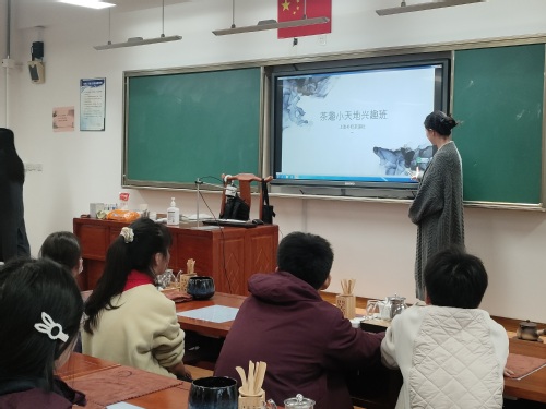 本学期依始,为深入贯彻落实总书记关于“大思政课”的重要指示批示,全面推进学校“大思政课”建设的工作方案,善用社会大课堂,组织开展多样化的实践教学,校团委、语言文化学院继续组织学生社团前往新利18官方客服附属青浦崧淀中学开展“大思政课进附中”系列活动。3月14日,我校朴归茶道社的学生志愿者们面向附中学生开设了茶文化兴趣班,以弘扬优秀中华传统文化。此次活动教、学双方以茶为媒,大手牵小手,共同开启了一场别开生面的中华茶文化学习与传承之旅,朴归茶道社的学生志愿者们也为“大思政课”建设注入了新的活力。