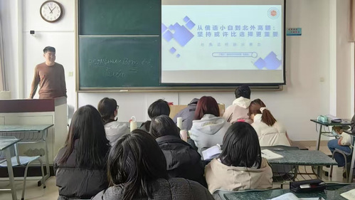 杜胤达详细分享了他的成长历程,从入学到读研的经历,包括面对挑战时的坚持与努力以及成长过程中的关键转折点。他讲述了寒暑假期间及在校时期备战俄语大赛的经历与教训,为有意参赛的学生提供了宝贵的参考,并且通过分享身边人的成功经历,增加了同学们对俄语学习的信心与动力。俄语系一年级新生们从中获得了宝贵的经验借鉴。