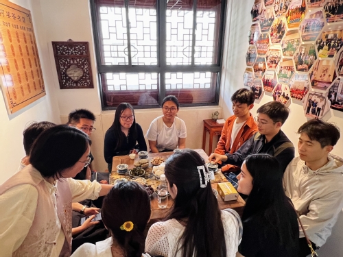 活动伊始,双方师生就“大思政课”建设的实践探索展开交流。商榻小学校长蒋利民介绍了学校的基本概况、建设思路和非遗特色课程体系,表示希望通过共同打造资源共享、信息互通的思政教育网络,探索思政教育新路径。周怡表示,“大中小思政一体化”建设是我校的重大课题,将阿婆茶等非遗文化转化为育人资源,依托学院平台推广中华优秀传统文化,有助于推进留学生教育,引导中外学生感知中国、感知上海,为培养具有文化自信的时代新人开辟新路径。