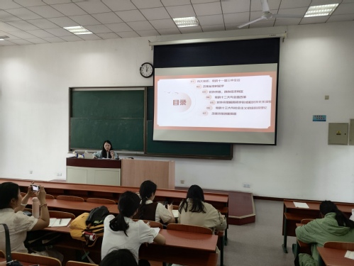 语言文化学院(国际交流学院)组织员丁雨凡讲授了题为《党史里的改革开放:时代脉搏与奋进力量》专题党课,详细讲述了改革开放的历程,结合历史与现实案例,展现了改革开放如何推动中国走向繁荣富强,引导学员积极投身于新时代的奋斗征程。