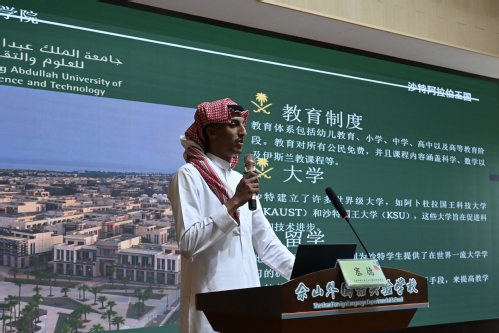 沙特阿拉伯留学生塞德从家乡独特的沙漠地理环境出发,向同学们介绍了沙特阿拉伯的社会文化;此外,他还解读了“沙特2030愿景”引领下的现代化转型实践,以及当地的教育制度。俄罗斯留学生达里亚向同学们介绍了俄罗斯的国家象征,并从文学、艺术、节日、饮食等角度展示了家乡的多彩文化;借助精美的图片,同学们也欣赏了莫斯科、圣彼得堡等地的标志性景观。