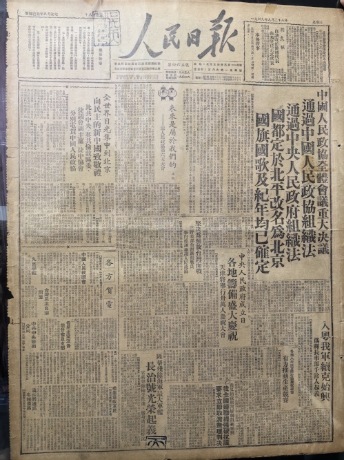 (1949年9月28日《人民日报》,牟健惟收藏)