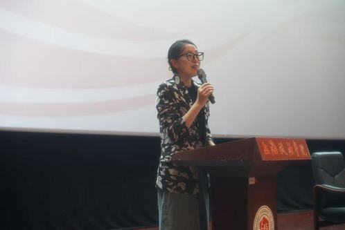 2023级汉语言文学(文化创意产业方向)专业本科生、院学生会执行主席兼团委副书记杨璐璐作为在校生代表发言,她以“勇敢的人先享受世界”为主题,以自身为例勉励同学们勇敢地打碎标签、付出行动和拥抱未知,每个人都有无限的可能,并鼓励大家用足够的勇气面对得失,无畏无悔。
