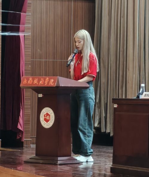 2025级留学生洛心(乌兹别克斯坦)作为留学生代表发言,表示学院融洽的氛围让她倍感温暖,期待未来能够与各国同学携手探索学术新知,积极参与到跨文化交流之中。
