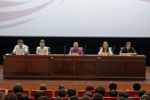 近日,语言文化学院(国际交流学院)2025级新生开学典礼在天马讲堂举行。语言文化学院(国际交流学院)院长欧阳美和老师、语言文化学院党总支副书记(主持工作)周怡老师、副院长翁晓玲老师、吴苌弘老师、学院党总支副书记魏洲阳老师,各教研室主任、教师代表、新生班班主任以及辅导员出席,2025级全体本科生、研究生、留学生参加开学典礼。学院党总支副书记魏洲阳老师主持开学典礼。