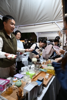 夜幕降临,社团集市在璀璨灯光中落下帷幕,而朴归茶道社成员们传播茶文化的脚步不会停歇,他们用行动证明,茶文化从未远离年轻群体,只是在等待更创新的表达方式。这场茶香与青春的美丽邂逅,不仅为松江大学城注入了文化活力,更为茶文化的创新发展提供了青春样本。