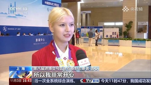 来自“一带一路”共建国家乌兹别克斯坦的留学生洛心,凭借对中、英、俄、乌兹别克四国语言文化的深刻理解与鲜活体验,接受央视新闻采访1次,澎湃新闻采访2次以及青春上海专访,以留学生视角讲述跨文化交流的温度与力量,成为进博会上亮眼的志愿者风采。