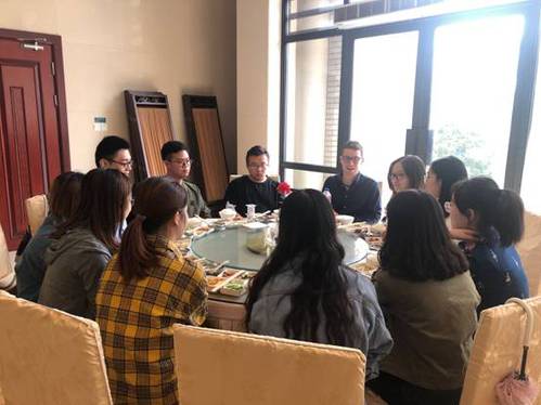 在讲座开始之前,我院邀请Daniel Edmiston博士与今年报名利兹大学“3+1”项目的同学代表共进午餐。席间,Daniel Edmiston博士与学生们在餐桌上交流所学专业,留学国外的各种思考,还讨论中外文化,轻松的氛围更加拉近了Daniel Edmiston博士与同学们之间的距离,也让同学们对利兹大学的学习与生活有了更深的了解。