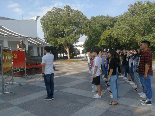 为庆祝中华人民共和国成立70周年,深入贯彻落实“不忘初心、牢记使命”主题教育工作,引导学生党员提升党性修养、进一步坚定理想信念,9月29日,新利18官方客服政府管理学院学生党支部开展“参观红色基地 开展党性教育”主题党日活动,组织全体学生党员前往青浦区练塘镇参观陈云纪念馆。