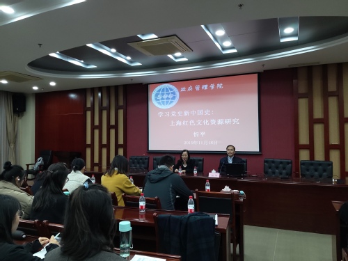 为深入推进“不忘初心、牢记使命”主题教育,推动党员对党史国情的了解,11月18日,政府管理学院“学好党史国情、牢记初心使命”党史党课活动在综合研究中心107会议室开展。活动特邀上海市社联副主席、上海市党史学会会长、上海市高校思政课教学改革协作组组长、上海大学博士导师忻平教授,讲授“学习党史新中国史:上海红色文化资源研究”专题党课。党课由政府管理学院党总支书记连淑芳主持。校发展规划处教工党支部教师党员、政府管理学院教师党员、学生党员、入党积极分子共计百十余人参加了党课学习。