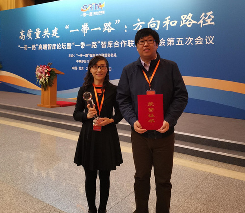 政府管理学院杨玲丽、韩冬涛代表学校“一带一路”安全研究院参加本届理事会和高端论坛,领取奖杯和荣誉证书,并参与中联部组织的调研工作交流座谈会。(韩冬涛摄影、撰稿)
