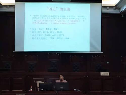 开班典礼结束后,上海大学教授、博导陶倩为全体培训班学员讲授“学好‘四史’,实现中华民族伟大复兴中国梦”专题党课。陶倩教授以习近平总书记的讲话精神为切入点,梳理了党史、新中国史、改革开放史、社会主义发展史的历史脉络和内在逻辑,并以生动的实例和详实的数据指出“四史”的主线是中国共产党为人民谋幸福、为民族谋复兴、为世界谋大同的历史,其共同的历史逻辑就是党的领导。陶倩教授在课程的最后指出,深入学习“四史”,是进一步增强守初心、担使命的党员思想自觉和行动自觉的行动指南,号召在座学员要深刻学好党史,提升党性修养;学好新中国史,增强历史担当;学好改革开放史,坚持深化改革;学好社会发展史,坚定理想信念。