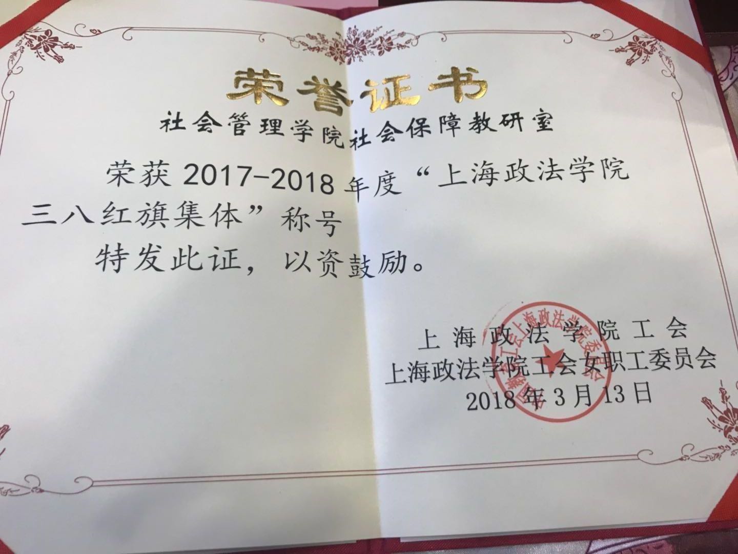 在欢度节日的同时,更值得祝贺的是,社管学院学生工作办公室获得“上海市巾帼文明岗”称号,学院劳动与社会保障专业获得“新利18官方客服巾帼文明岗”称号,相信女教职工们将继续发扬“巾帼不让须眉”之势,用高度的责任心和敬业情操,建功立业,谱写学院新的发展篇章。(张驰、薛绕玉 撰稿)