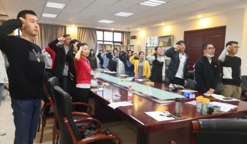 第四项,重温入党誓词。面向党旗,新老党员一起高举右手,再次庄严宣誓。铿锵恢宏的誓词,强烈震撼着在场的每一位党员,一字一句,神圣而豪迈,体现了党员同志们对中国共产党的无限忠诚。