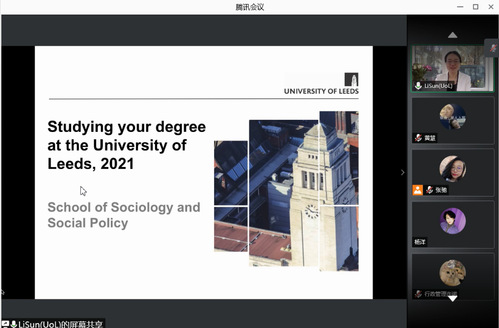 利兹大学“3+1”项目是我院与英国利兹大学合作的硕士培养项目,也是我院的重点国际交流项目。4月22日,学院召开利兹大学“3+1”社会学项目线上宣讲会,由学院外事秘书张驰老师主持,并有幸请到了来自英国利兹大学社会学专业的孙丽老师,给有意参项的学生进行学院介绍及专业解读。同时,我校国际交流处的学生项目负责人刘灵老师也参与了会议。参与会议的学生包括大三已申请社会学项目的学生,以及大一、大二有意向申请的学生。