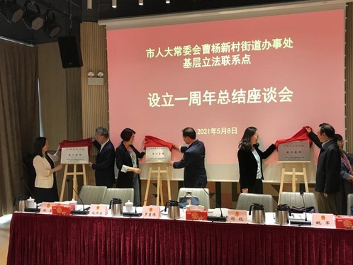 为了有效发挥了作为社情民意表达方式的桥梁纽带作用,该基层立法联系点邀请了上海市法学会等6家单位作为顾问团队,同济大学法学院等多所高校、京衡等十几家律所专业工作者作为专家团队,为立法工作建言献策。鉴于地方立法涉及诸多社会治理和民生发展等方面议题,该立法联系点工作也为我院相关专业师生开展社会研究和服务社会提供了切入点,双方因此而建立了密切的协作关系。2021年4月21日,曹杨街道人大工委周崔军副主任带领周阮文、孙亚婷同志来访。5月8日立法联系点召开设立一周年总结座谈会暨高校实训基地揭牌仪式,热情邀请我院参与。我院总支书记连淑芳教授和社会学教研室主任石发勇教授前往参加,市法学会党组副书记、专职副会长施伟东同志与连淑芳同志共同为我院实训基地揭牌。下一步将通过双方紧密协作实现高校与地方立法事务需求的有效对接,一方面运用本院学术资源为立法联系点提供咨询和顾问服务,另一方面也通过参与该点工作为本院师生科研和实训打造重要合作平台。