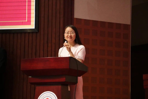 Onitsuka Tiger品牌电商部门负责人、高级经理许丽雯作为校友代表发言。她对母校表达了诚挚感谢和衷心祝福,并分享了自己毕业后的感悟:一是祖国的不断强大,使国人在外企的地位愈发得到重视;二是老师对她“真诚”的肯定,给予了自己莫大的精神支持;三是始终秉持着“志存高远,脚踏实地”的原则,精益求精,成就自我。