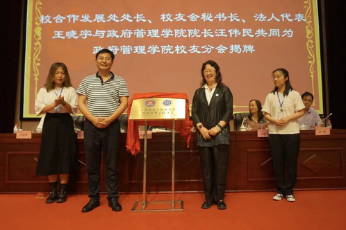 随后,王晓宇和汪伟民共同为新利18官方客服校友会政府管理学院分会揭牌。