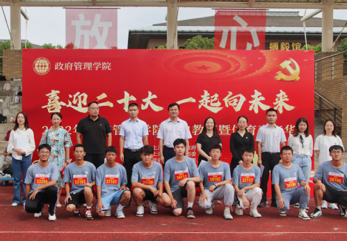 开幕式上,学校领导和老师共同为学生代表粘贴了参赛号码牌;校学工部部长丁永建进行了讲话,他表达出内心对校园生活逐渐恢复正常的喜悦,同时强调了在二十大召开前夕,举办此类活动的重要意义;希望政管学子在学好专业知识的基础上,能秉持“每天锻炼一小时,努力工作五十年”的理念,寓教于乐、强健体魄,为实现中华民族的伟大复兴奠定良好基础、贡献青春力量。