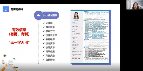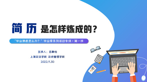 2022年9月30日晚,政府管理学院毕业季“毕业焦虑怎么办?”就业指导系列活动第一讲“简历是怎样炼成的?”以线上会议方式顺利开讲。政府管理学院辅导员吕静怡主讲,学院200余名毕业生及辅导员线上参加。