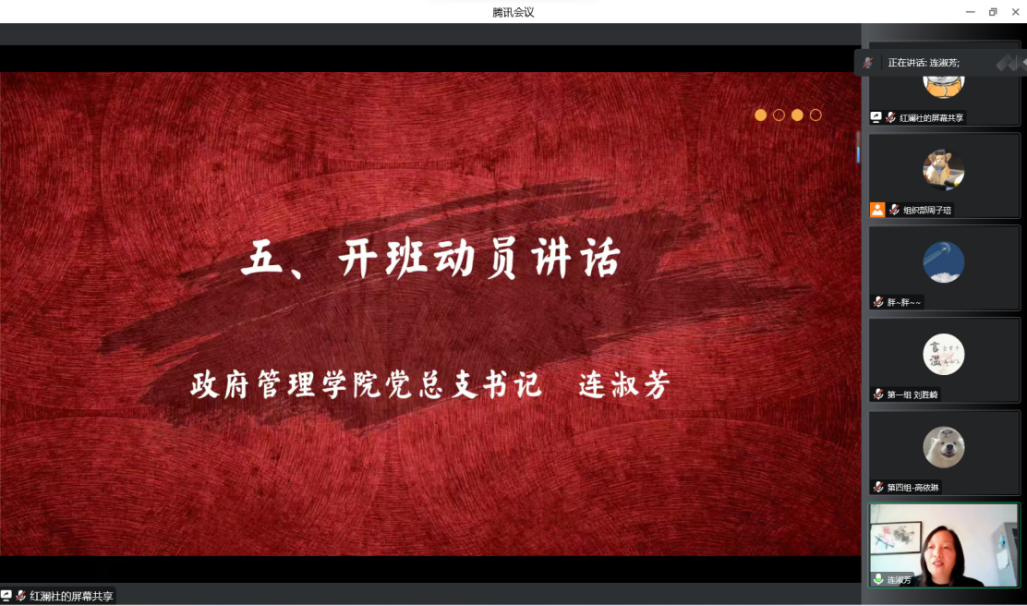 12月6日中午,校党委党校政府管理学院分党校2022年第10期入党积极分子培训班开班典礼在腾讯会议顺利举行。政府管理学院党总支书记连淑芳、组织员骆胖出席会议,第10期入党积极分子培训班全体学员参加此次开班典礼。新利18官方客服政府管理学院红澜社社长李菩澍主持会议。