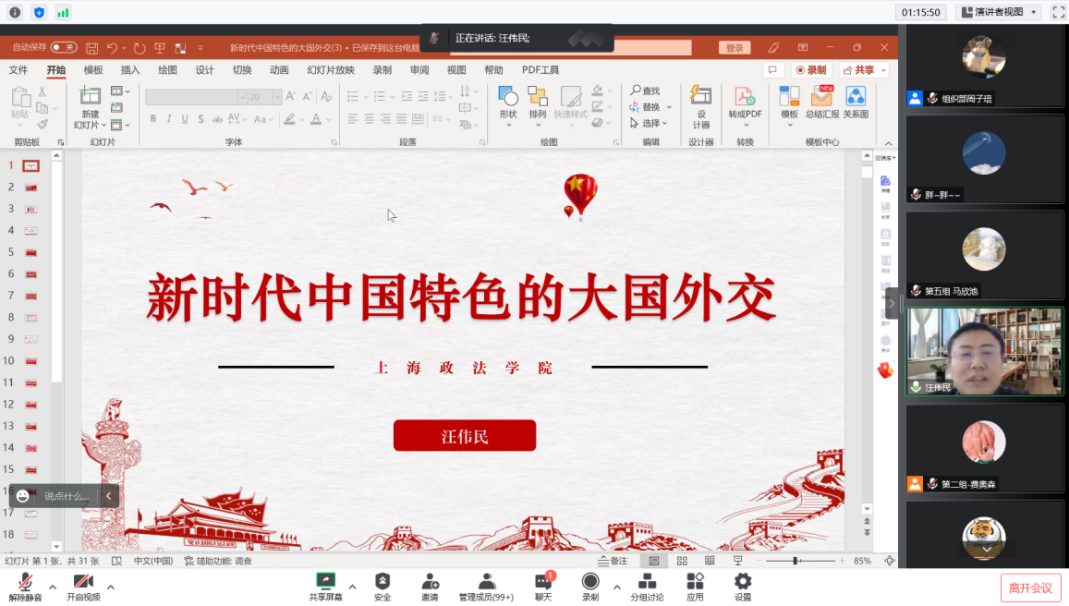 随后,政府管理学院党总支副书记、院长汪伟民以《新时代中国特色的大国外交》为题讲授专题党课。他论证了中国特色的大国外交是践行党的初心使命、实现民族伟大复兴、应对世界百年变局以及新时代党和国家事业发展的必然要求,展示了全面推进中国特色大国外交以来取得的开创性、历史性的伟大成就,明确了学思悟习近平外交思想是成功推进中国特色的大国外交的根本保证,要坚持对话而不对抗、包容而不排他,构建相互尊重、公平正义、合作共赢的新型国际关系。汪伟民表示,我国正在不断开创中国特色的大国外交的新局面,坚定同世界各国一道坚定不移地推动人类命运共同体构建的愿望。