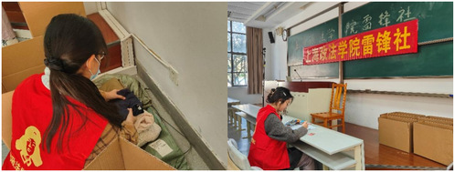 捐赠一件衣服,增添一份温暖。一滴水或许微不足道,但汇聚成河足以让荒漠变成绿洲。在这春光温良,岁月萦香的三月,有这样一群人,缺衣少食,还在为没有衣服而苦恼艰难度日,而我们很多大学生还在为有许多闲置在箱底不穿的旧衣不知该如何处理而苦恼。在本次捐衣活动中,你捐赠的衣物将为贫困地区缺少衣物的人送去温暖,让你的善举化为光亮,照亮他们艰难的生活。雷锋社各部门成员各司其职,组织捐衣活动有秩序地开展,对衣物进行整理折叠,把捐赠的衣物分门别类地装进不同的箱子,保持衣物的整洁。