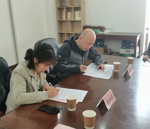 冯晓岗老师首先阐明了两个支部共建的意义和现实基础,经充分研讨协商,两支部决定在组织建设互促、党员互动、党建载体互用、产学研教互助等方面充分协作、共谋发展,并在现场签订“党支部结对共建协议书”。