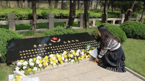 参观完纪念馆后,师生代表依次擦拭革命先烈墓碑群并献祭菊花花束,全体成员也将写满对革命先烈崇重之情的追思卡片放在墓碑旁。