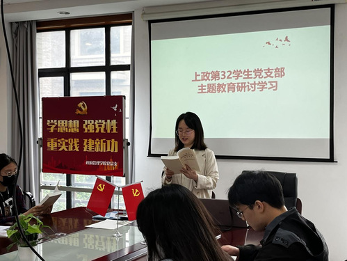 为深入学习贯彻习近平新时代中国特色社会主义思想,进一步强化党性修养,提高政治站位,增强“四个意识”、坚定“四个自信”、做到“两个维护”。2023年5月15日中午,上政第32学生党支部围绕“学思想 强党性”这一主题开展集中研讨。支部书记冯玉沁主持会议,上政第32学生党支部全体党员出席。研讨会上,各位支部成员就加强党性修养,提高思想政治素质等问题发表了自己的体会和感悟。