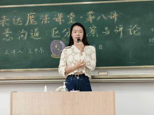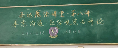 政府管理学院学生工作品牌“表达魔法课堂”于5月18日开展第八讲,政府管理学院辅导员王平乐进行授课。本次课堂的主题是“善意沟通:区分观察与评论”。