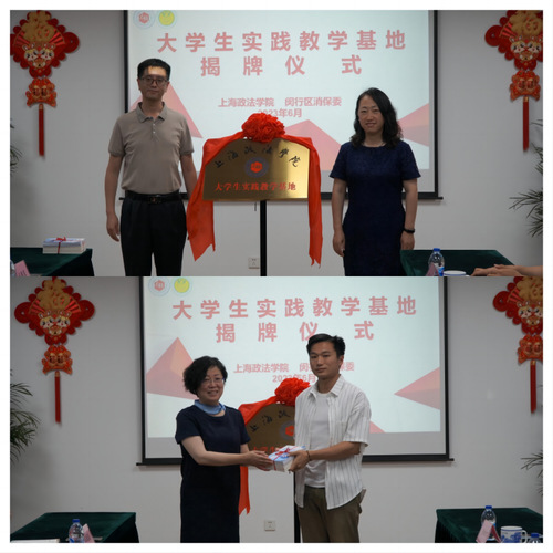 会上,闵行区消保委为即将在此参与实习的政管学子赠送了书籍、详细介绍了实习岗位需求、要求和培养目标,并与政管学院一同为“大学生实践基地”进行揭牌。