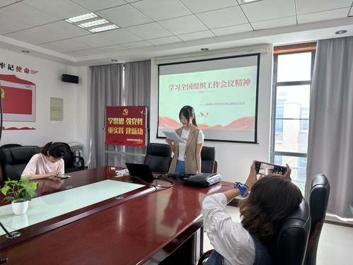 活动分为两个部分,第一部分是传达学习全国组织工作会议精神,在支部成员张紫纯的带领下,支部一同深入研读全国组织工作会议精神内容,逐一分享自己在学习中的感悟。随后,在“击鼓传花”的趣味游戏中,支部成员们分享了自己参与党日活动过程以及实习过程中的感悟和建议,并展开学习习近平总书记在四川考察时就第一批主题教育总结评估工作发表的重要讲话精神。