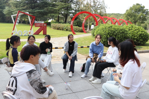 本次活动的主要目的是从增强学生的同辈支持角度出发,提升学生的抗逆力。活动伊始,小组主持人魏宇凡首先对大学生的抗逆力进行了简单的介绍。其次,主持人带领同学们开展“带着同伴寻找自己”的活动。同学们围成一个圈,主持人分发小卡片,同学们依次在卡片上写上自己的优势、缺点、在大学中所遇到的困难以及大学毕业后五年的规划,同时在背面画上自己的标志物。写完后,同学们两两互换卡片,交换三次,每次看完其他同学写的卡片后,留下自己的一两句感受或者鼓励的话。接着,小组中的志愿者将卡片散落在庸夫楼广场的草坪上。同学们两两一组,戴上眼罩,跟着指引寻找属于自己的卡片。看着其他同学给自己写的话语,同学们纷纷表示获得了同辈的力量。最后,同学们进行了活动感受分享。