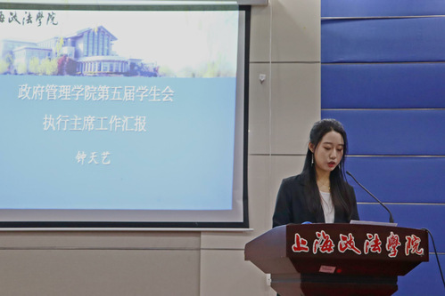 会议伊始,随着现场《光荣啊!中国共青团》团歌的嘹亮声拉开本次大会的帷幕,钟天艺进行工作汇报。她对第五届团学新成员表示欢迎,汇报开学以来学生会的各项工作情况并表达对未来工作的展望。