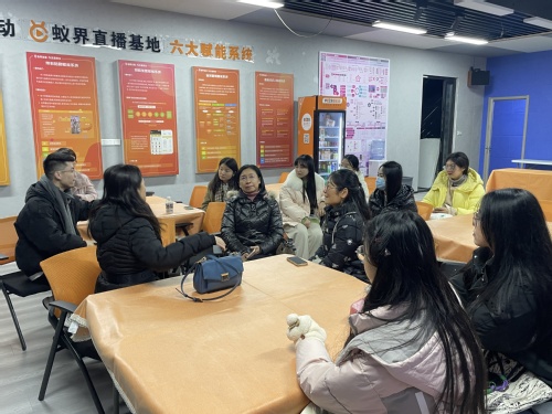 为推动人才培养和就业有机联动,深化产教融合校企合作,深入了解新兴就业赛道,2023年12月19日下午,政府管理学院党委副书记闯晓燕、王慧博教授、王晓燕副教授、辅导员孙晨语携学生代表走访上海红海鸿易人力资源有限公司蚁界直播基地。
